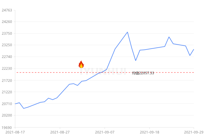 2021年9月29日上海現(xiàn)貨鋁價22825上漲335,最低22800最高22850,前三日均價22770,前五日均價22884。